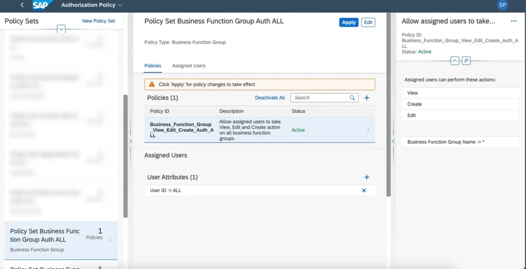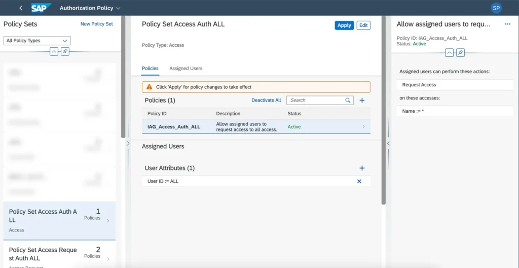 - Create policy set and assign users.