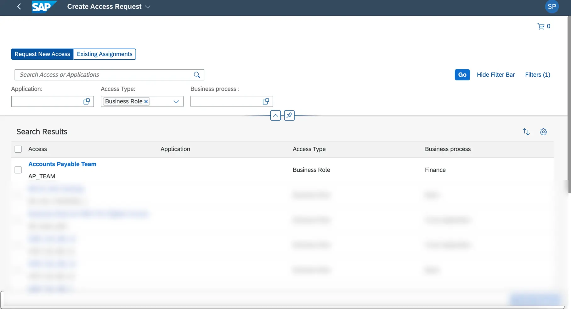 3. Select the access (can be from one system or multiple system – example ARIBA and S4 in this context)