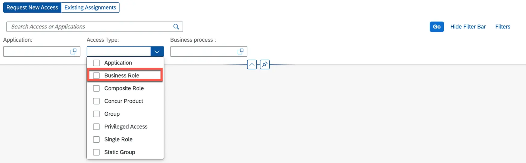 A business role is typically associated with a job function or business process. An example for business roles is Accounts Payable team & Accounts Receivables team. Below are the various options in creating & managing business role and their use in access request form.