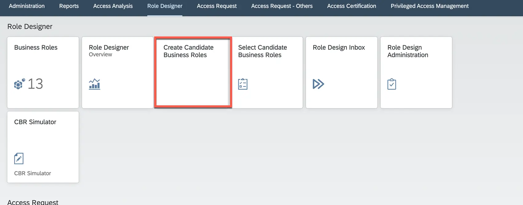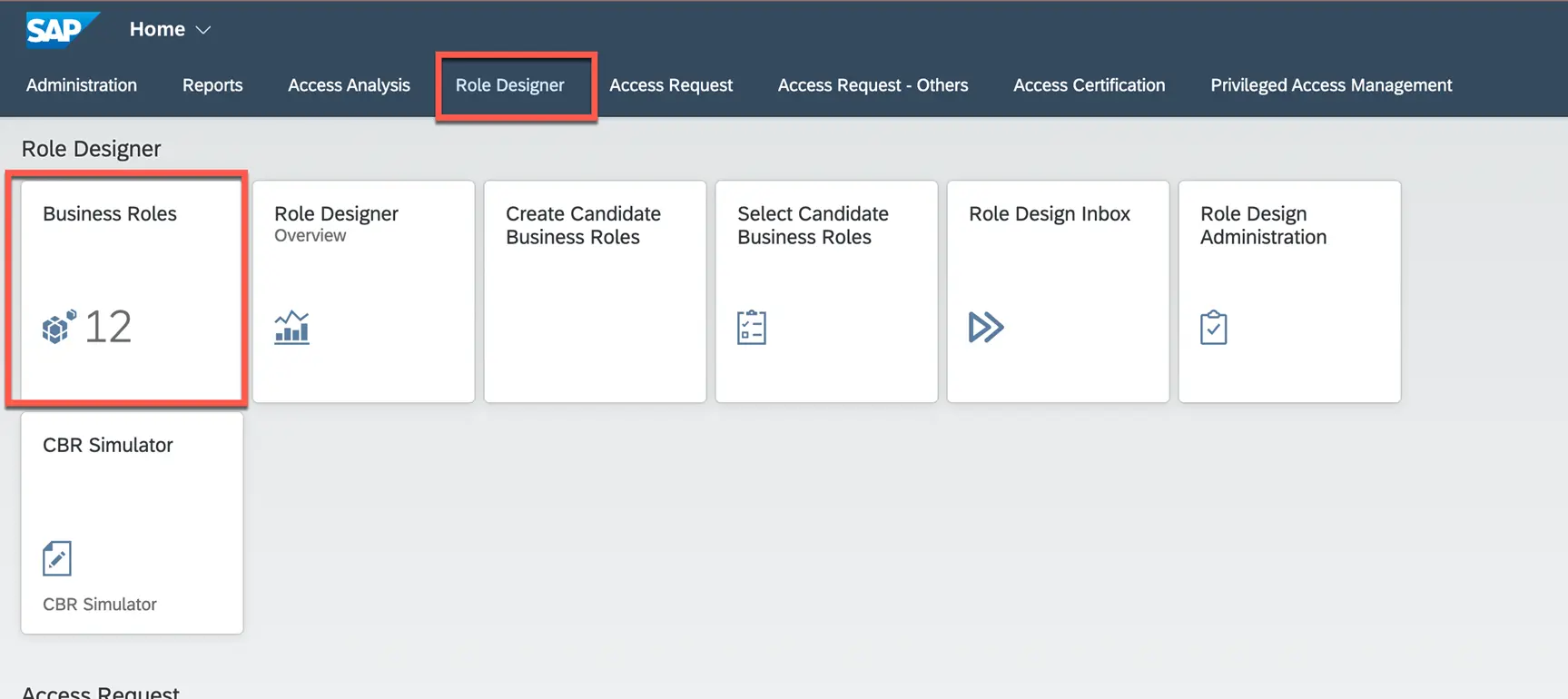 1. Select business role tile under role designer.