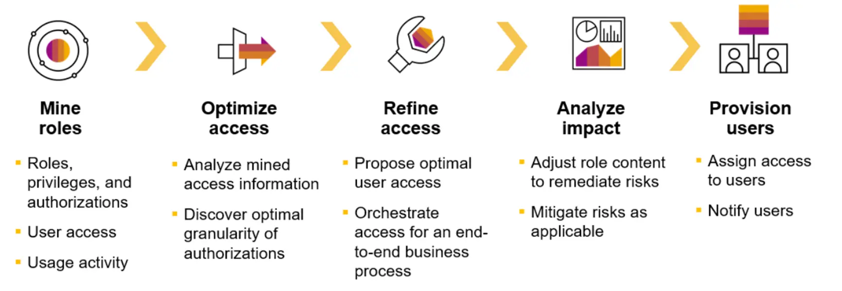 It also ensures that users have optimized access assignments. Refer to the diagram for an illustration of this functionality.